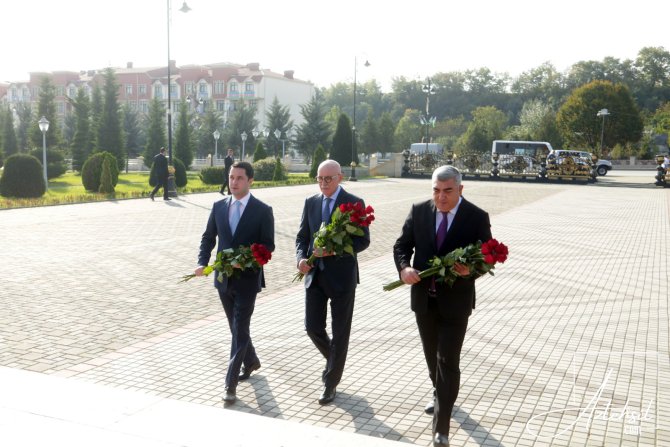 Səfərin əvvəlində nazir müavini Firudin Qurbanov Quba Rayon İcra Hakimiyyətinin başçısı İlqar Mahmudov və Quba–Xaçmaz Regional Təhsil İdarəsinin müdiri Coşqun Əliyevlə birlikdə ulu öndər Heydər Əliyevin abidəsini ziyarət edib, önünə gül dəstələri qoyub.