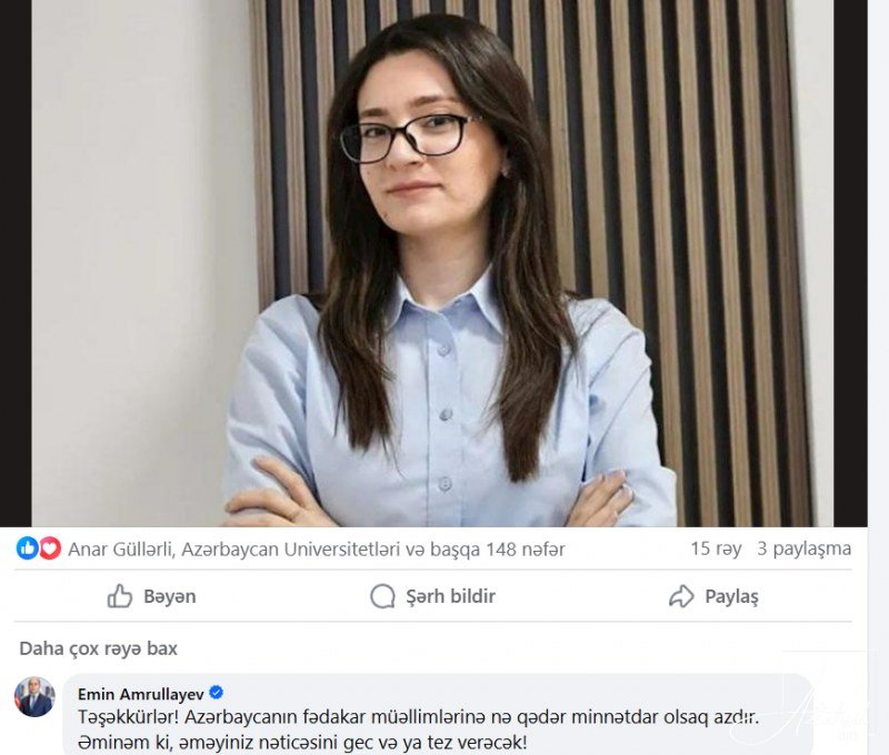 Azərbaycanın Elm və təhsil naziri Emin Əmrullayev Facebook-da paylaşılan müsahibəyə münasibət bildirib.